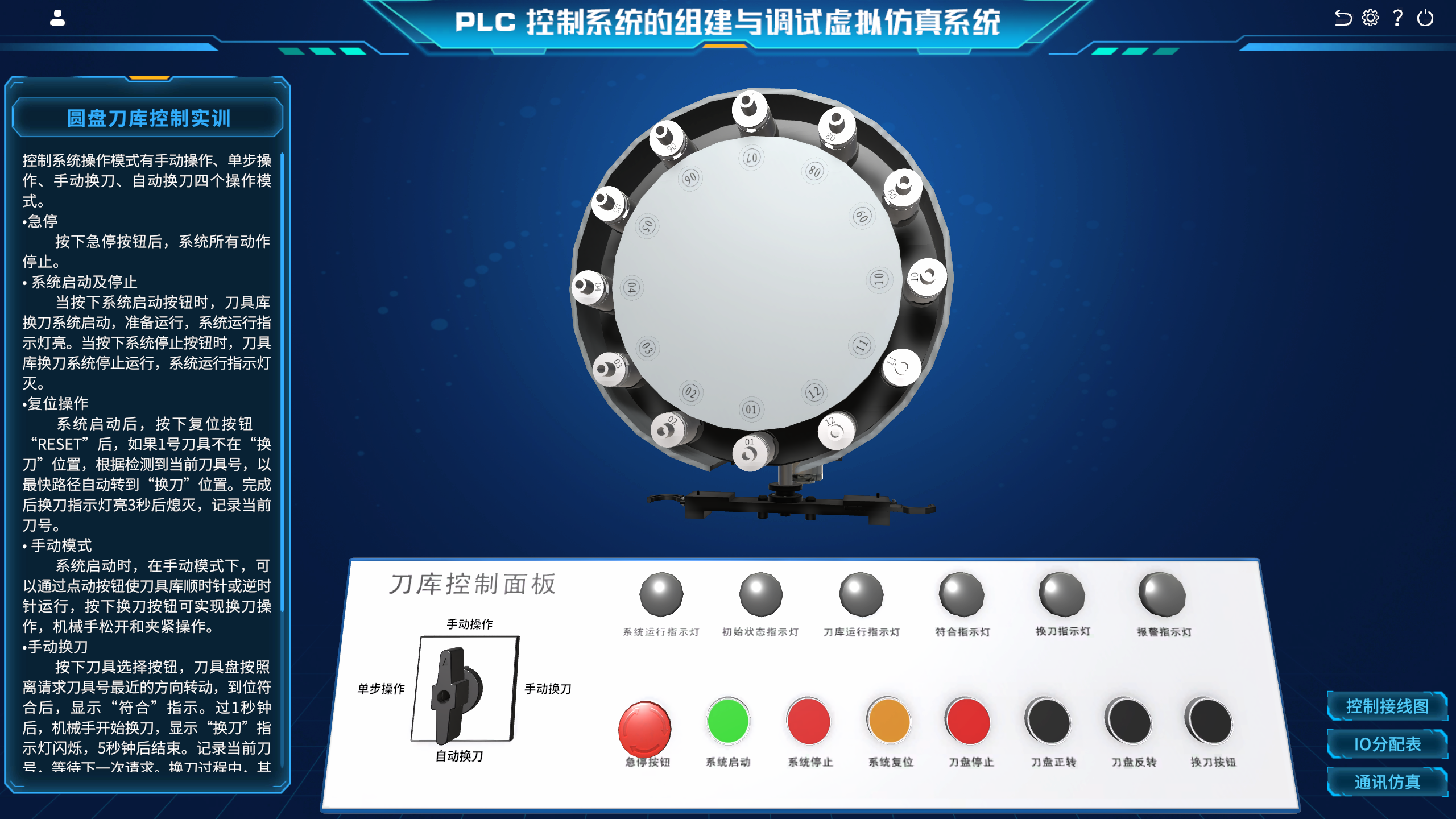 PLC控制系统组建与调试虚拟仿真实训系统是一款支持PLC控制技术的实训软件。软件结合实训指导书以VR零部件模型支持实训训练,加深学生对可编程控制器的应用和理解。软件通过再现PLC的实训场景,模拟PLC硬件环境及编程平台,让学生可以根据任务编程并实时查看运行结果。通过先在软件上操作再去实际实验台实训既可同时安排多个学生同时学习,也可减少PLC硬件的损耗和采购数量。