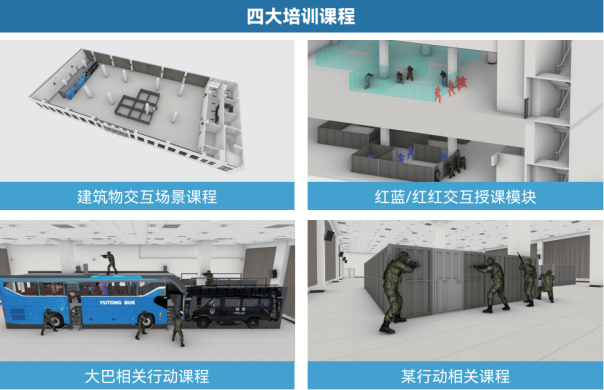 利用大空间动捕技术搭建虚实融合的作战场景,主要训练课题:城市CQB行动、交通工具反恐行动、多域红蓝战术对抗训练。MR虚实融合训练系统着眼未来战场和新型作战样式特点,运用新的训练模式和高新技术手段组织实施沉浸式、对抗性、实战化训练,旨在全面提升训练效能和部队新质战斗力,特别解决城市驻军和军队院校“小场地、大练兵”的现实问题。打造逼真实战场景,强化战训一致,实现教战融合。